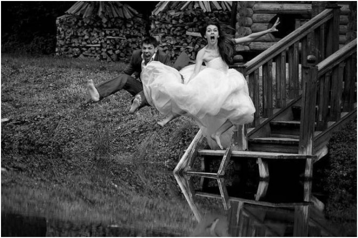 Formal wedding portraits can be a little old-fashioned, so why not do things your own way? You only get married once; better have crazy fun while at it. The couple here, for instance, decided to go all out and get wet without a care in the world. If this photo warms our hearts this much, we wonder what a framed one in the couple's home does for them.
