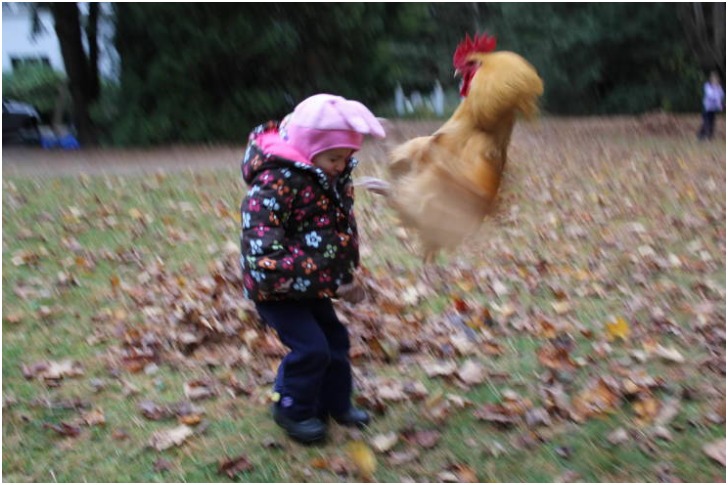 We've come across some of the best perfectly timed pictures, but this one in the list stands on a different footing altogether. It looks like a battle between the child and the rooster just ensued. Though we don't know the reason behind this combat, we assume that the two exactly don't get along with each other.
