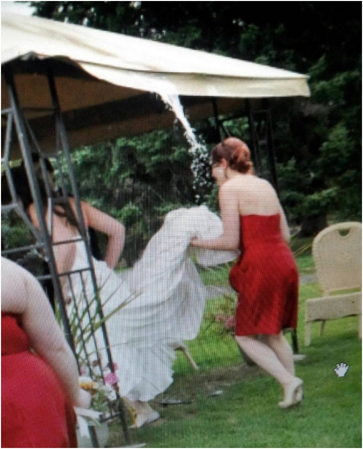 It does seem like a bad state of affairs, yet we hope that the party found some good humor in it. After all, the bride's beautiful dress was saved by a superwoman's sacrifice that day, which was the right thing to do.