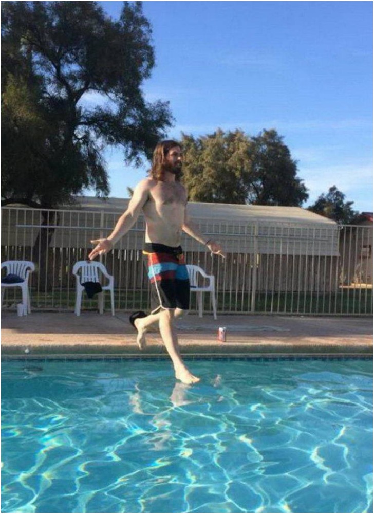 Sometimes, pretending can give the impression of being so convincingly lifelike, right? It's hard to decide whether a normal person is actually walking on water or not, especially when other additions like hair and beard are added. You have a tricky situation completed by the subtle positioning of hands here.