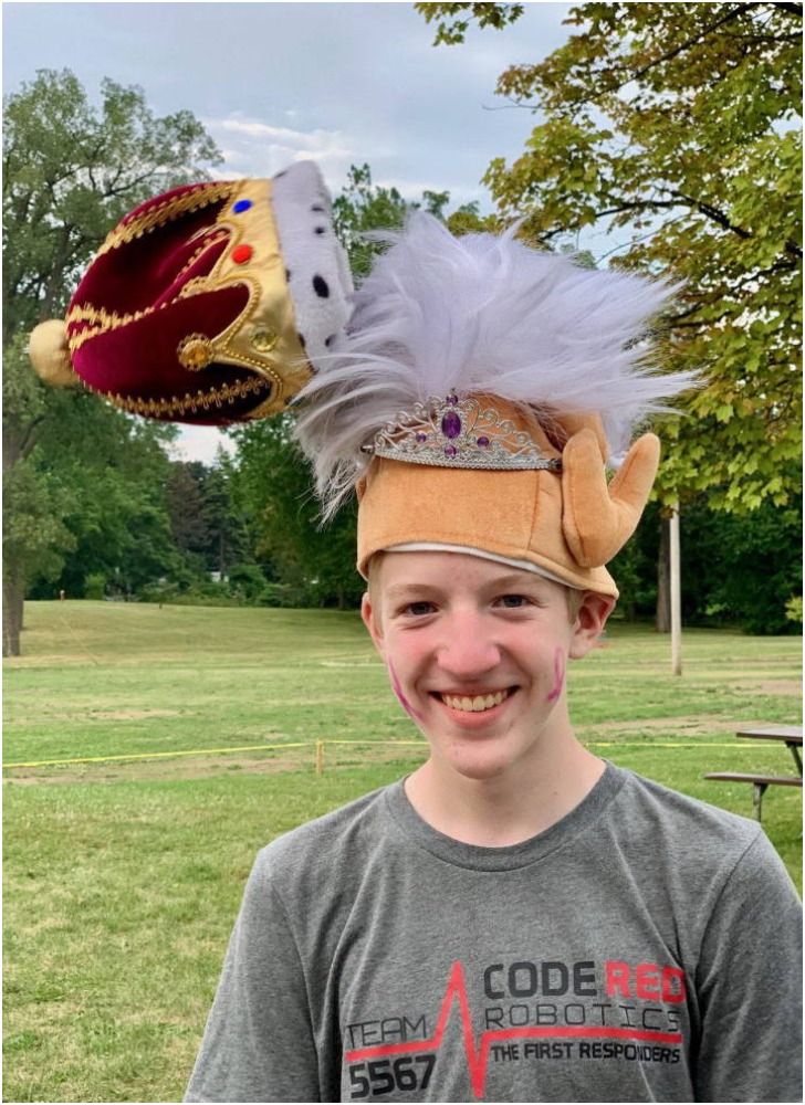 Anyone looking at this picture would find themselves scratching their heads to comprehend what this boy is wearing on his head. Firstly, you can spot a turkey or a chicken wing near his ears, which comes with Einstein-like bushy hairs. Yet, that's not all. There's also a touch of royalty!