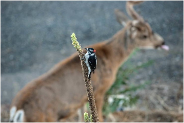 We are unsure if this was the case here, but the bird's pose seems too perfect to be a coincidence. Then the deer at the back blends so well into the picture that we wonder how much it was paid to be a gorgeous blurry backdrop. Well, this could have just been a lucky shot by the cameraman and nothing more.