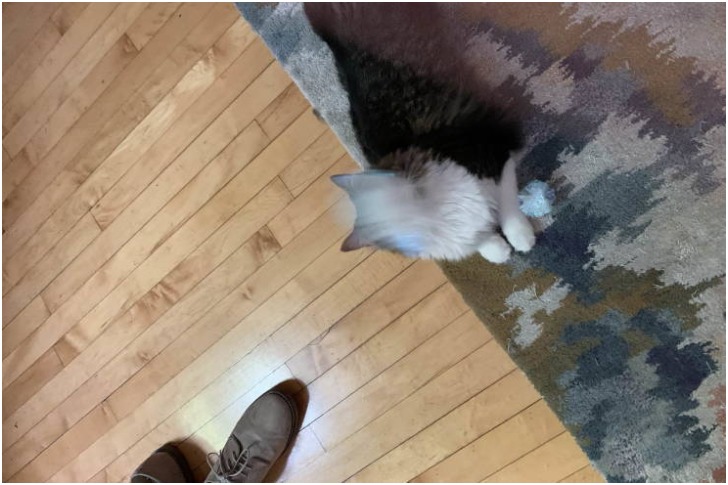 Don't even try to guess where it will land, the table, or out the window. At this point, we just wish the window was open and the cat didn't land all squished up against the glass. Now, one might call us a bit bent towards "team cats," but we love that cute portrait on the wall.