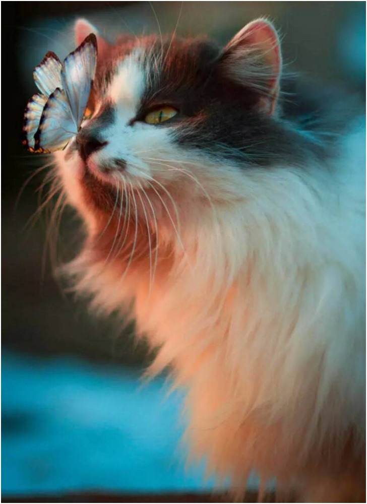 Despite being a curious species with quick reflexes, the feline didn’t instinctively pounce on the butterfly when it settled on its black nose. Instead, it paused, and they both enjoyed a second of mutuality. How long that lasted, only the photographer can tell. We would bet, though, it only lasted long enough for him to take his shot.