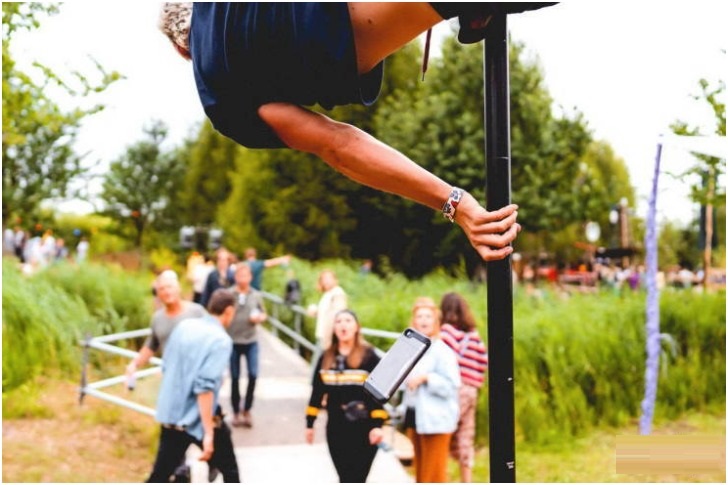 If we set this man's robustness aside for a moment, the cellphone is the show-stealer here. Now, what exactly happened at the instant cannot be explained, but we're guessing, as the guy lifted his body in the air to pull this attention-grabbing stunt, the phone in his pocket was quick to bid adieu to the other contents and leap out in the open.