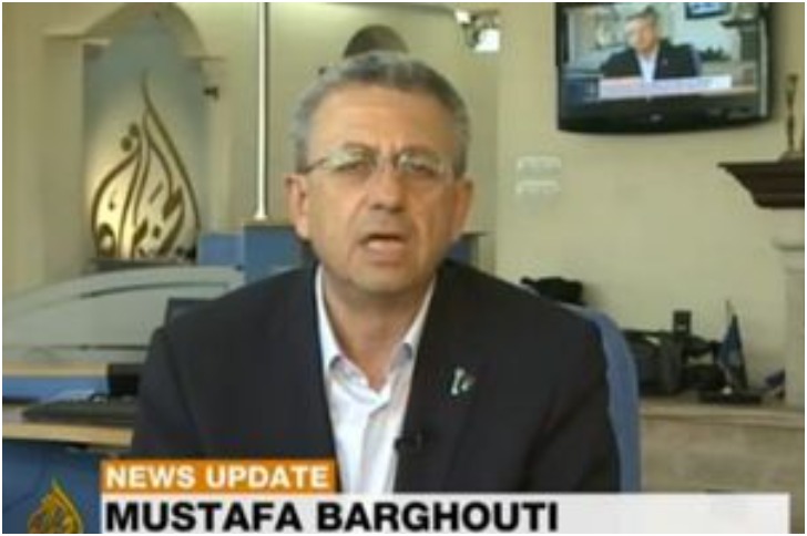 In case anyone needed a 'TED' talk today on being his or her cheerleader, here goes. This is a sign from Mr. Mustafa Barghouti that they need to love and appreciate themselves more. The presenter is on live television and at the same time streaming his live on his television in the background.