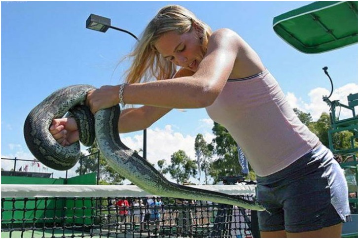 If she thought the snake just wanted to be held, the beautiful lady must have been shocked, seeing it had an entirely different plan that threatened her torso. If she didn't let go of the reptile right after the picture was taken, she has a well of courage in her.