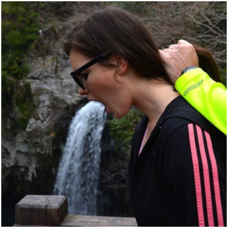 You have seen many images in the list that resulted from some perfect timing. Nonetheless, this particular one here is different as the photographer exactly knew what he was doing. The photograph is seemingly hilarious, but we are sorry for the woman who happened to have received some bad news.