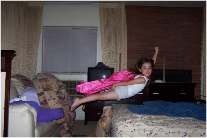 Growing up, kids will pull all sorts of pranks, take part in any game and play their favorite superheroes at any chance they get. They don't let fear stop them, and that's likely the reason why they have so much fun. This girl here is all the proof we may need. She believed just like Supergirl, she could fly from the sofa to the bed, and it worked!